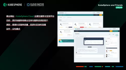 原来,KubeSphere开源社区背后有青云QingCloud的支撑。同时,KubeSphere开源社区也在积极打造自身的商业模式,上线KubeSphere.Cloud商业网站,为社区有商业支持与服务诉求的用户提供付费支持服务。除了专职的运营人员以外,社区还支持有余力的用户以众包的方式提供支持服务。