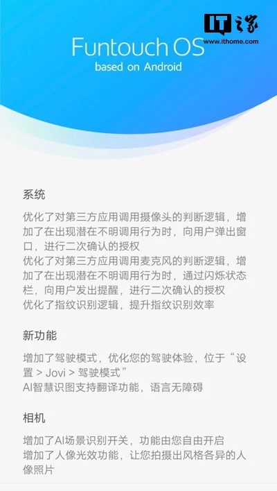 优化了对第三方应用调用摄像头的判断逻辑,增加了在出现潜在不明调用行为时,向用户弹出窗口,进行二次确认的授权优化了对第三方应用调用麦克风的判断逻辑,增加了在出现潜在不明调用行为时,通过闪烁状态栏向用户发出提醒,进行二次确认的授权优化了指纹识别逻辑,提升指纹识别效率。