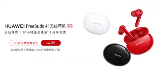 HUAWEI FreeBuds 4i无线耳机已于2021年2月21日正式开启预售,售价499元,3月8日将正式开售,用户可通过华为官方商城、各大授权电商等渠道进行预订。预售期间线上预订可享“预付50元抵100元”的优惠活动,到手价只需449元,还有三期免息、晒单赢好礼等活动相伴。快来感受华为在先进科技之下,打造的全新真无线降噪耳机,让更多人感受高品质产品带来的独特魅力。