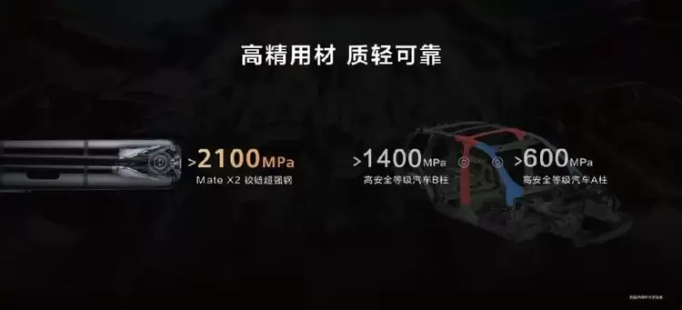 华为Mate X2铰链系统拥有多种高精尖材料及工艺。在采用了锆基液态金属的同时,还首次引进超强钢材质,加入碳纤维复合材料。