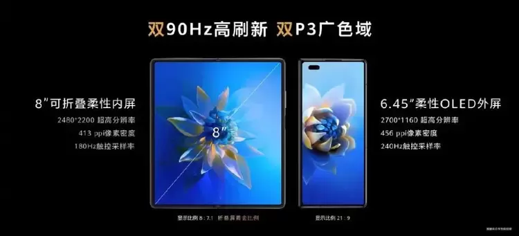 同时,华为Mate X2内外屏支持双90Hz高刷新率、双P3广色域。