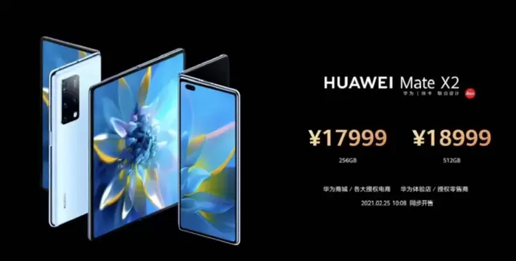 价格公布环节,华为Mate X2提供256GB和512GB两个版本,定价分别为17999元、18999元,并将于2月25日上市发售。