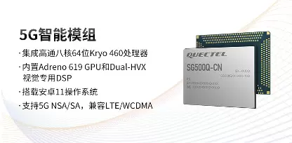 5G智能模组SG500Q-CN采用高通骁龙™ 480 5G移动平台,集成高通八核64位Kryo™ 460处理器,内置Adreno™ 619 GPU和专门面向人工智能计算的Hexagon™ 686处理器;同时搭载安卓11操作系统,满足各类行业应用拓展需求。该款5G智能模组还集成了摄像头、触摸屏、LCM等多种接口,多媒体功能丰富,最多支持四路摄像头,最大可支持三路同时使用。值得一提的是,超高的性价比使得SG500Q-CN 5G智能模组能够赋能更多的5G行业应用。