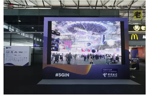 在N4馆入口处设有3*5米网红打卡大屏幕,不仅能总览5G创新地带的整体及6大主题场景,还能参与抢AR红包、合影拍照等互动体验,真切感受线上虚拟元素与线下物理展馆之间的融合与交互。