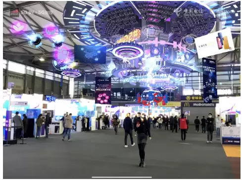 此次2021 MWC上海的5G创新地带展区,有80位展商带来在毫米波、5G行业应用、5G消息、物联网+区块链、XR终端和芯片等方面的创新产品和演示。由中国电信及旗下号百控股股份有限公司运营的5G+MEC智慧商业数字孪生平台,对5G创新地带展区进行三维视觉数字孪生打造,联合创建以“The Space In 5G”为主题的混合现实展区。令现场的每一位观众都能看见、听见、感受到线上线下融合数字化营销新玩法和沉浸式娱乐新体验,无疑成为展会现场最吸引眼球的一抹亮色。