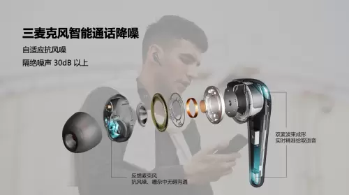 左、右耳机各搭载三枚麦克风,融合高精度智能算法,可自适应消除环境噪声多达 30dB。双反馈麦波束赋形阵列,实时精准拾取语音;通话麦克风可优化音色、抗风噪。相比双麦通话降噪,即使在嘈杂、风噪干扰的环境下,轻声细语也能让对方听得更清晰、真实。