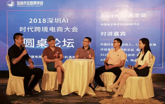 以“服务、科创、融合、引领”为会议亮点的2018(深圳)AI时代跨境电商大会现场,堪称跨境电商业界龙头的一次“全明星组合”,亚马逊运营专家毛宏先生,敦煌网总裁助理李战军先生,大龙网副总裁丛继念先生,中国好东西网合伙人、副总裁徐亮先生,环球易购市场部总监朱凡先生,321电商学院高级讲师林振梅女士,AI物流联合创始人陶威先生,中国电子商务协会副秘书长、深圳卫视、凤凰卫视评论员、网贷东方创始人高圣涵先生,深圳市互联网学会秘书长梓炎先生等业内精英到场并参与讨论,现场座无虚席,氛围热烈,为跨境电商从业者提供了一个获取知识与深入交流的平台,会议由深圳市互联网学会新闻中心主任牛晓希主持。