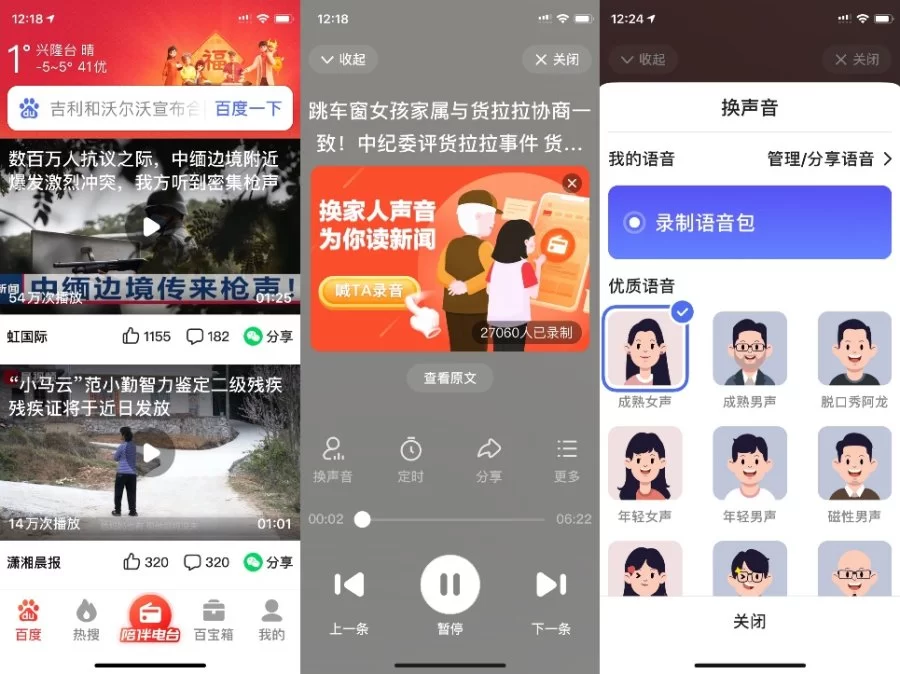 “家中老人现在最喜欢的就是百度大字版的「陪伴电台」”北京市的刘先生表示,为了响应就地过年呼吁,春节期间没能陪伴在父母身边,心里有很多失落和无奈。但是“陪伴电台”的个人语音包录制,让他换了一种方式,用“声音”陪在了父母身边。