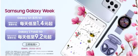 目前,三星开启了GalaxyWeek活动,入手三星Galaxy S21系列手机可以享受至高24期分期免息、600元换新补贴、2年无忧电池服务等福利。如此丰厚的促销优惠无疑让这款影像旗舰更具竞争力。如果你追求极致影像体验,相信三星Galaxy S21系列一定会是你的不二之选。