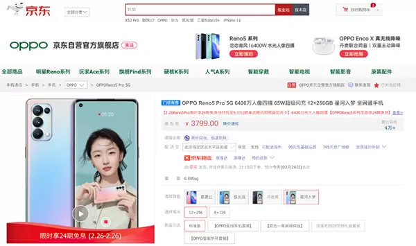 OPPO Reno5 Pro主打人像视频摄像,首发搭载行业领先的FDF全维人像视频技术系统,在视频拍摄上有着巨大的提升。采用6400万像素主摄,800万像素的广角,200万的人像和200万像素的黑白镜头,前置3200万像素的自拍镜头。喜欢这款手机的朋友,现在来京东下单仅需3399元起,购机即享以旧换新至高补贴3000元、晒单送腾讯会员月卡等福利。
