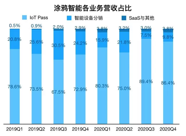 虽然亏损额度高,但是涂鸦智能在连接设备数方面取得了不错的成绩。根据招股书数据,截至2020年12月31日,由涂鸦智能提供支持的智能设备数约为2.043亿台——如果我们更直观地比较,截止至2019年底,小米IoT平台已连接的IoT设备数为2.348亿台。