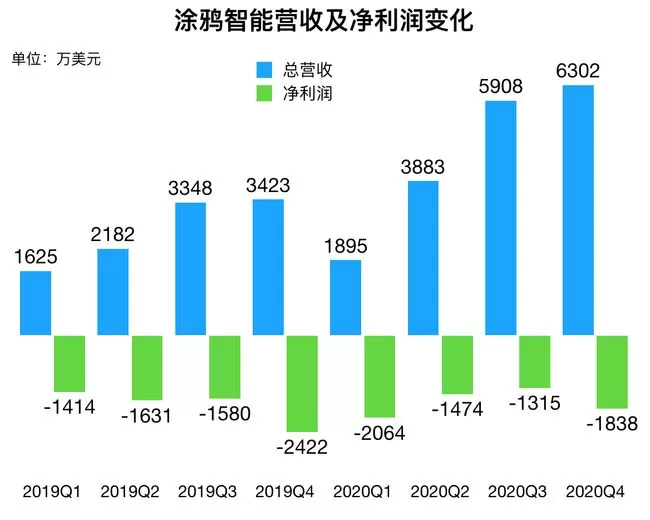 招股书财务信息显示,2020年涂鸦智能整体营收1.799亿美元,较2019年同期增长70%,净亏损则从7047万美元小幅收窄至6691万美元。这样就意味着在过去两年间,涂鸦智能亏掉了将近1.37亿美元(约8.89亿人民币)。