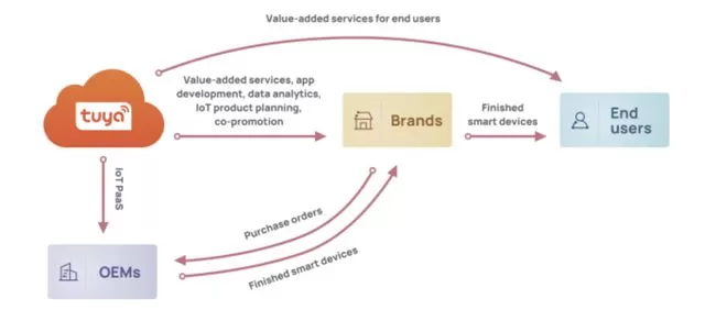 凭借这一商业模式,涂鸦智能可以连接开发人员、品牌、原始设备制造商、终端用户,最终组成生态系统,各厂商之间也通过涂鸦智能平台相互合作交流。同时,这一生态执行开放式的架构,终端用户只需一个界面就能连接和管理不同品牌的涂鸦智能授权设备。