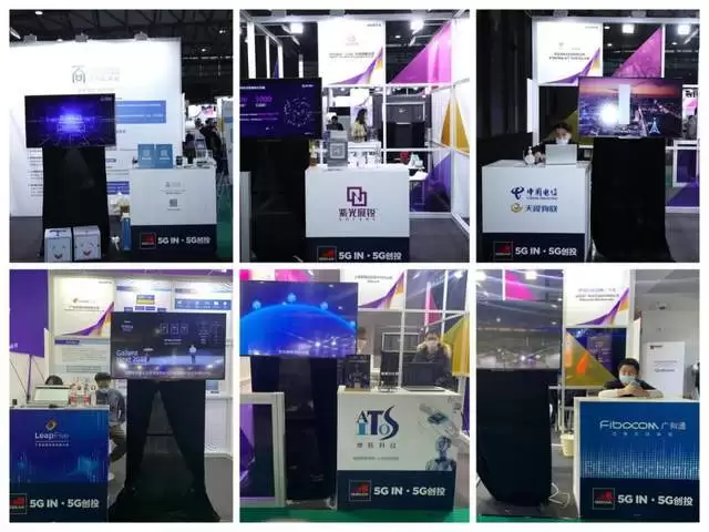万向区块链与紫光展锐、中国电信天翼物联、跃昉科技、摩联科技、广和通联合展台群(排名无先后)