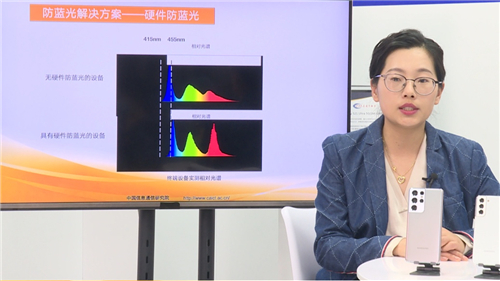 众所周知,自然界的日光被认为是让人眼最为舒适的光源。这主要是因为自然日光光谱连续,无突兀的尖峰,各个波长的能量分布比较均匀,所以才让我们的眼睛较为适应。但是在终端设备上,屏幕大多由红、绿、蓝子像素组成,光谱在红、绿、蓝波段存在尖值,并且蓝光波段峰值往往最高,所以其能量峰值带来的健康风险逐渐引发了大家的关注。