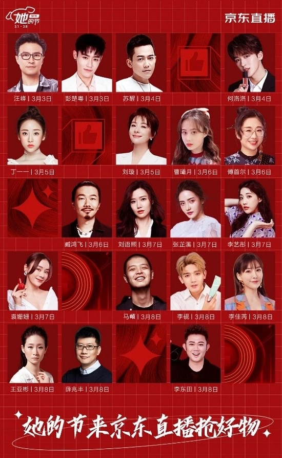 3月3日,以“用心守护用心的她”为主题的京东“她的节”专场期全面开启。期间,彭楚粤、刘璇、臧鸿飞、刘语熙、苏醒、马頔等艺人将走进京东直播间,带来每天一场的精彩直播,送出节日福利。