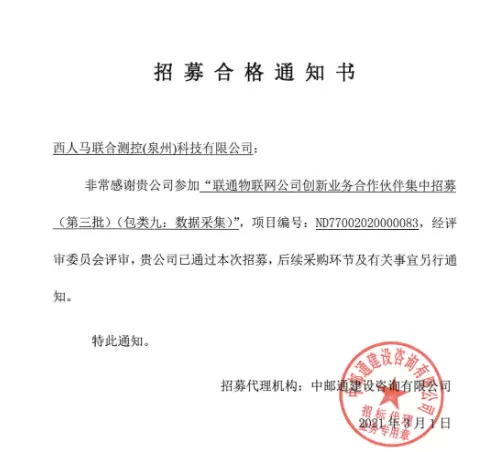 近日,西人马在联通物联网公司创新业务合作伙伴集中招募(第三批)中通过评审,成为联通物联网公司智慧农业、智慧城市和数据采集创新业务合作伙伴。去年10月,西人马预测性维护平台同样入围联通物联网公司创新业务预测性维护项目产品库。