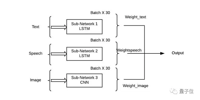 在实现过程中,通常是将识别不同要素子网络的输出加权组合,以便每个输入模态可以对输出预测有一个学习贡献。