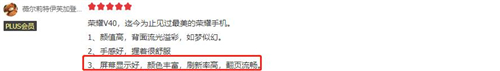 用户在评价ID设计的同时,盛赞最多的还有荣耀V40的屏幕,比如“它是荣耀手机的最好屏幕”、“显示好,颜色丰富,刷新率高,翻页流畅”等。事实也的确如此,荣耀V40这块屏幕堪称行业顶尖,不仅支持10亿色彩显示,能够做到“视觉所见,屏幕所显”的细腻还原效果,同时还支持顶尖的120Hz刷新率和300Hz触控采样率,其中高刷新率能够带来更为流畅的画面显示效果,高触控采样率则带来超灵敏的触控反应,不止是“翻页流畅”, 打游戏更是一绝。