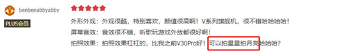 针对于常见的拍照场景,用户也是好评不断,主要集中在拍照清晰和夜拍强劲上,譬如“拍照真的牛”、“可以拍星星拍月亮”。据悉,荣耀V40加持5000万超感光影像系统,其中5000万主摄采用1/1.56英寸旗舰级超大传感器,可谓底大一级压死人,同时还支持自研的RYYB阵列,进一步提升40%的进光量,面对极限暗拍毫无压力,坐实“夜视仪”之称。另外,荣耀V40还支持AI RAW 域算法,在拍人时也有出色表现,能够精准背景虚化,更自然肤色,更精致五官。