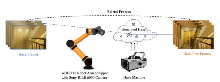 现有的深度学习去雾方法多采用单帧去雾数据集进行训练和评测,从而使得去雾网络只能利用当前有雾图像的信息恢复清晰图像。另外一方面,理想中的视频去雾算法却可以使用相邻的有雾帧来获取更多的时空冗余信息,从而得到更好的去雾效果,但由于视频去雾数据集的缺失,视频去雾算法鲜有研究。