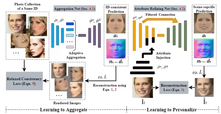 在开放的人像集合中学习3D人脸的聚合与特异化重建