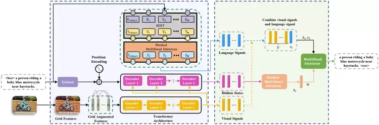 本文提出了一个视觉信息增强和多模态信息敏感的Transformer结构,利用网格与网格之间相对位置的几何关系解决了特征展平操作造成的空间信息损失的问题,并且利用一个额外的注意力层度量视觉特征与语义特征的贡献,从而充分引导图像描述中视觉词和非视觉词的生成,在该任务的线上线下公开数据集上均证明了此模型的优势。