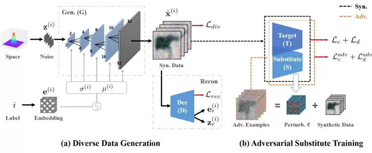 在处理对抗样本时,深度神经网络显得非常敏感,容易输出错误的预测结果。而在黑盒攻击中,攻击者并不知道被攻击目标模型的内部结构和权重,因此训练一个替代模型去模拟目标模型内部结构就是一种非常高效的方法。