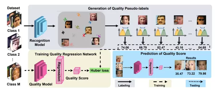 近年来为了确保非受限场景的稳定性和可靠性,人脸质量评估(Face Image Quality Assessment, FIQA)已经成为人脸识别系统不可或缺的一部分。这种方式只使用了类内信息,而忽略了类间信息。在本工作中,我们认为高质量的人脸应该与其类内样本相似并与其他样本不相似,因此提出了一种新的无监督FIQA方法,该方法结合了相似分布距离进行人脸图像质量评估(SDD-FIQA)。我们通过计算正负样本相似度分布间的Wasserstein距离生成高质量的伪标签,并以此训练用于质量预测的回归网络。实验结果表明,我们提出的SDD-FIQA显著超过了SOTA方法。同时,我们的方法在不同的识别系统上显示出良好的泛化性。后续我们将开源该工作。