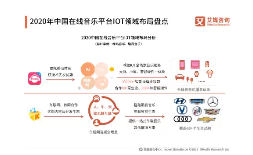 在新冠疫情和“新基建”发展的背景下,在线音乐行业与创新技术的 融合进一步加速,尤其是5G逐渐推广,为在线音乐行业注入新的发展动力,拓宽其应用场景。目前在线音乐行业依托5G+AI+IOT,已基本实现IOT全场景音乐服务。