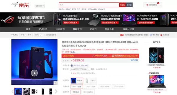 腾讯ROG游戏手机5系列开售,京东以旧换新至高返2021元E卡