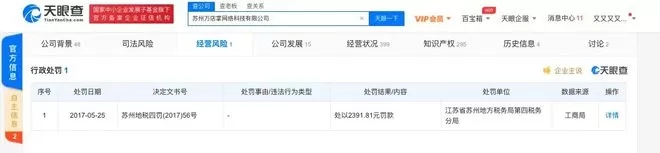天眼查经营风险显示, 此前该公司有一条行政处罚记录。其曾经被江苏省苏州地方税务局第四税务分局处以2391.81元罚款。此外,据融资历程显示,该公司已完成两轮融资,交易金额超9000万人民币,投资方有德同资本、金沙江创投等。
