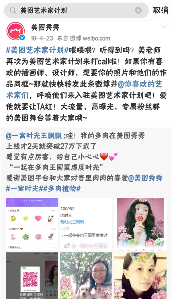 而后,随着艺术家计划全面开放,平台强有力的吸引力与知名度吸引了大批优秀创作者创作原创贴纸,原创贴纸内容的引入为当时用户进行素材创作提供了源源不断的活力,美图公司的美学生态也在此过程中不断形成、完善。