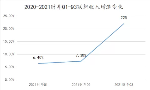这也已经反映在联想过去一年的业绩上。随着PC市场的回暖,2021财年Q1-2021财年Q3联想收入增速分别为6.4%、7.3%、22%。着眼未来,类似的收入增长趋势将进一步延续。