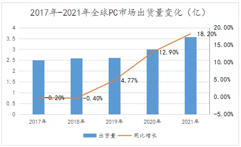 过去,投资人常常认为PC是存量市场。但目前来看,该观点无疑值得商榷。IDC最新预测,2021年全球PC出货量同比增长18.2%,较IDC上一次预测的1.6%提升了超过11倍。