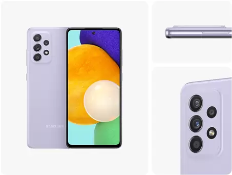 全新三星Galaxy A52 5G共带来香芋紫、氧气蓝、波波黑、奶油白四种配色以供用户选择。