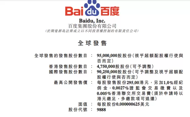 百度表示,计划将全球发售的募集资金净额用于:持续科技投资,并且促进以人工智能为主的创新商业化;进一步发展百度移动生态,进一步实现多元变现;及一般公司用途。