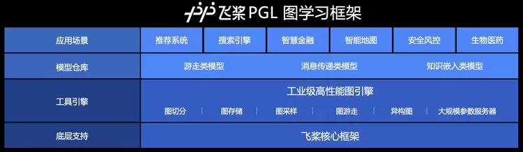 百度深度学习平台飞桨PaddlePaddle开源图学习框架PGLv2.0版本,全面支持动态图机制,可支持百亿规模大图,用户可以通过PGL实现高效而又满足工业应用需求的图神经网络。PGL支持的百度内外部业务也是遍地开花,全面覆盖推荐系统、搜索引擎、智慧金融、智能地图、安全风控、生物医药等场景。