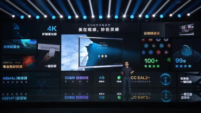最近华为又发布了协作平板,这是一种兼具投屏、书写功能,支持云会议和大量办公应用的大屏产品,可以应用于本地演讲、远程会议、在线办公交互等多种场景。