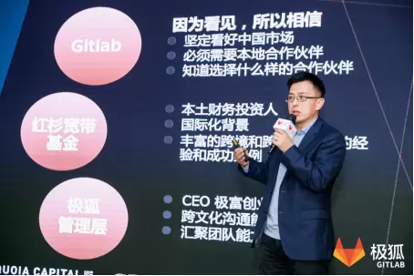 红杉宽带跨境数字产业基金合伙人徐全利表示:“一年半前在红杉资本全球执行合伙人沈南鹏的推动下,我与GitLab公司CEO Sid先生开始接触,并保持高频远程交流。相信基于“中外合资3.0”模式,依托充分本地化的决策、运营和产品开发,结合有竞争力的管理层激励和多样化、均衡化的股权和董事会架构,将打造企业级服务领域的‘新物种’,深入挖掘‘硅谷技术+中国速度’的潜能,为硅谷技术实现在中国的快速落地产出插上翅膀。”