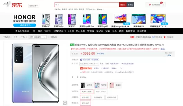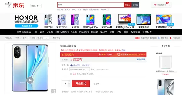 荣耀V40轻奢版确定3月23日发布,京东已开启预约