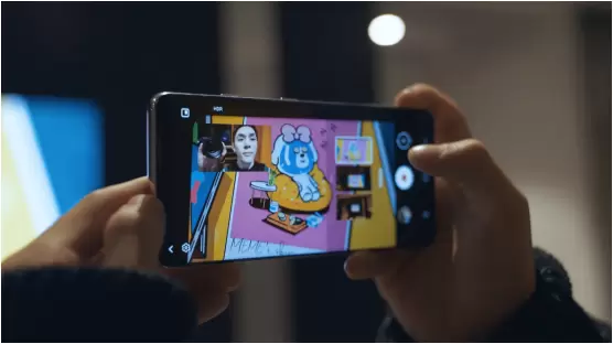 微电影侧记中李佳琦肯定了三星GalaxyS21系列5G所提供的导演视角,在拍摄的过程中可以开启画中画视图,让前置摄像头和三个后置镜头同时进行取景,还可以便捷切换后置的广角、超广角、长焦等镜头来记录不同的近景和远景,让创作者可以直观地判断并捕捉每一个精彩的瞬间。此外导演模式还支持左右分屏拍摄,后置摄像头拍摄静物的同时,前置摄像头同框记录自己的面部表情,让创作更具多元化,传递出更加独特的镜头语言。
