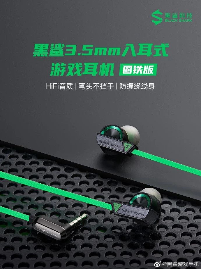 同时,黑鲨还曝光了旗下全新手机外设“黑鲨3.5mm入耳式游戏耳机”,该耳机分为“动圈”与“圈铁”两个版本,从产品海报上看,两款都采用了炫酷机甲风格设计,材质由锌合金打造,搭配黑鲨主配色面条线材,让耳机更加醒目、个性更加张扬。另外在接头处采用了3.5mm弯头设计,业界最小间隙可让玩家放心横握,游戏时不在挡手。