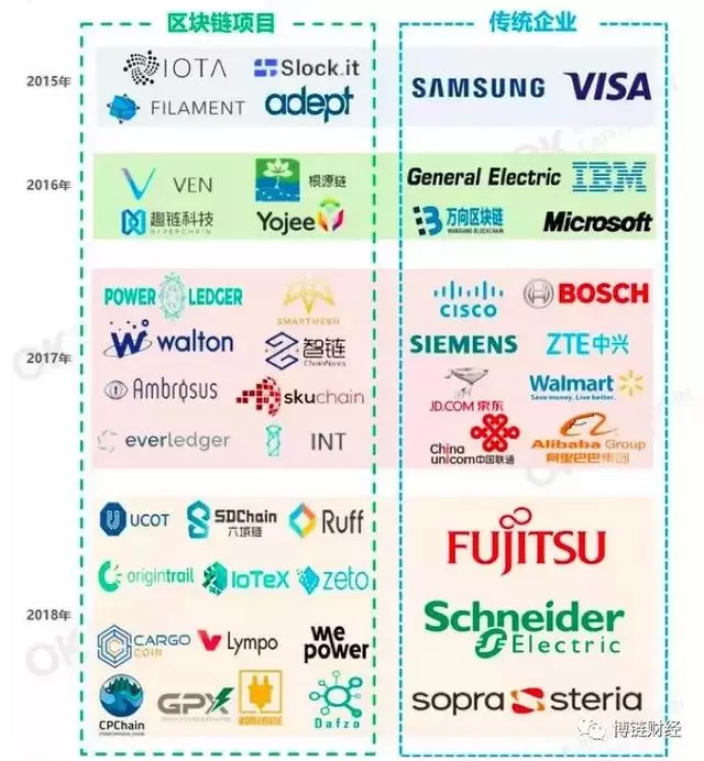 除此之外,一些传统企业、互联网巨头也纷纷布局区块链+物联网,寻求新的技术解决方案。
