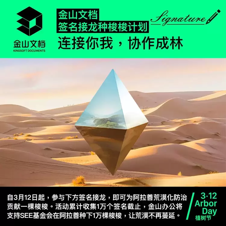 - 金山文档“签名种梭”计划圆满结束 支持SEE基金会种下万棵梭梭
