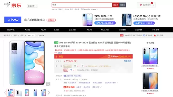 2021年的第一部自拍旗舰vivo S9e京东开启预售,购机赠半年延保