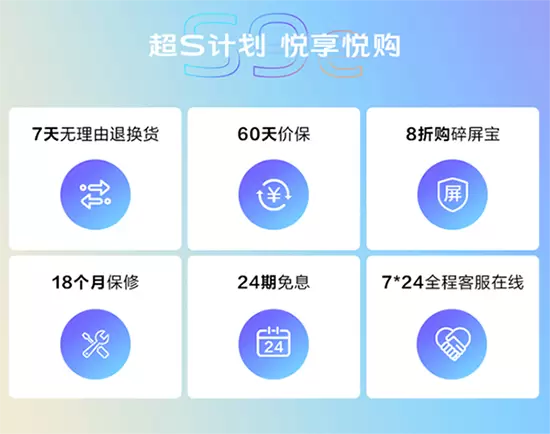 为了让广大用户拥有更好的购机体验,京东针对vivo S9系列推出了“超S权益”和“超S计划”,支持7天无理由退换货、60天保价、8折购碎屏宝、69元半年延保18个月超长保修的等等,全方位保障大家的购机需求。