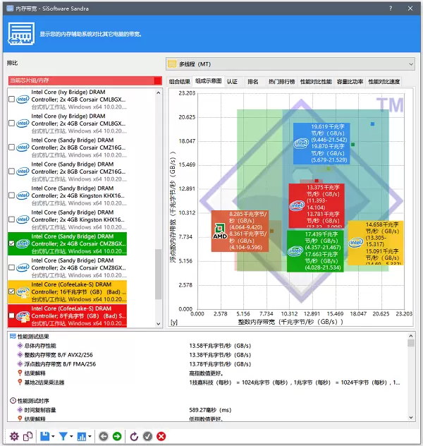 内存带宽从13GB/s提升到了13.58GB/s,提升空间并不明显,但这也是第一次保守尝试。