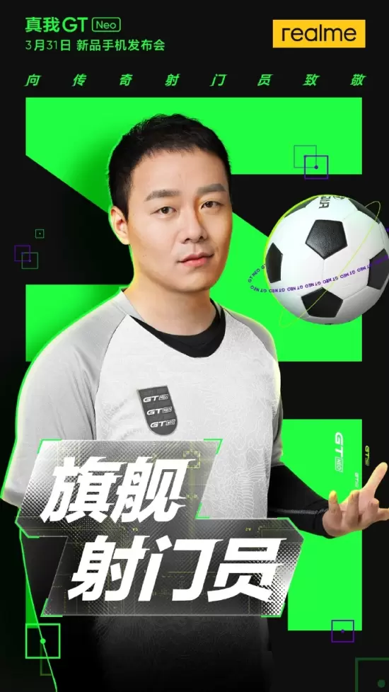 日前,realme 副总裁徐起在微博放出产品预热海报,他化身为“旗舰射门员”为真我GT Neo打call,并称“2021,realme 发力中高端,是旗舰颠覆者,也是旗舰射门员。”