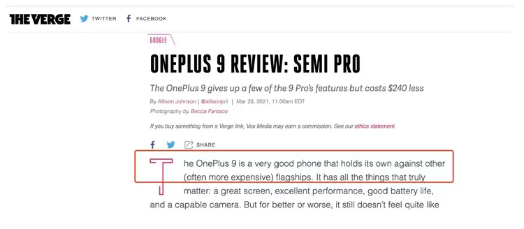 权威科技媒体TheVerge在一加 9 系列发布后第一时间评论道:一加 9 是一款极其出色的手机,完全可以和更昂贵的旗舰产品媲美。